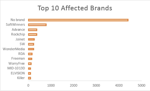 Торговые марки заражённых планшетов