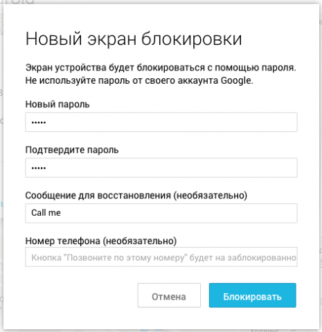 Android Device Manager представляет собой программное обеспечение, позволяющее отслеживать местоположение своих устройств, работающих под управлением Android, а также удалять с них данные или блокировать в случае утери аппарата. Сегодня Google выпустила обновление для своего приложения, которое добавляет новую функциональность. В случае, если при каких-либо обстоятельствах пользователь лишился своего устройства, есть возможность через веб-интерфейс либо через мобильное приложение с другого аппарата заблокировать аппарат, при этом при блокировке нужно ввести пароль, сообщение для человека, нашедшего устройство, и номер телефона, по которому можно связаться с владельцем.