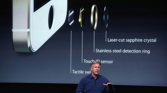 Металлический 5s идет в трех цветах – серебряном, золотом (который на самом деле «шампань») и «космическом сером». От предыдущей модели его отличает более мощный процессор A7, построенный на 64-битной архитектуре, и встроенный в домашнюю кнопку сенсор сканирования отпечатков пальцев. Отпечаток пальца можно поставить на экран блокировки вместо пароля. С помощью него же происходит покупка приложений в App Store, что надежно защитит счет владельца от шаловливых детских рук. Apple обещает, что отпечаток пальцев будет храниться локально, на самом устройстве, а не в iCloud и не на серверах компании. iPhone 5s может похвастаться усовершенствованной камерой с увеличенной диафрагмой f/2.2 и новой вспышкой, которая умеет смешивать свет от двух светодиодов таким образом, чтобы сохранить естественный баланс цветов. Софт для камеры также получил некоторые новые функции. Теперь камера iPhone 5s может делать 28-мегапиксельные панорамы, автоматически выбирать лучший снимок из серии и снимать видео в замедленном режиме.