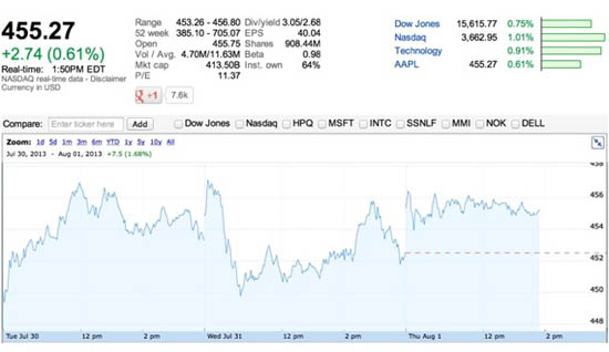 Инвесторы посчитали июль не самым успешным месяцем для Apple, в результате чего стоимость акций опустилась ниже отметки в $400. Однако уже в прошедший четверг компании вновь удалось вернуть себе титул «самой дорогой корпорации в мире».