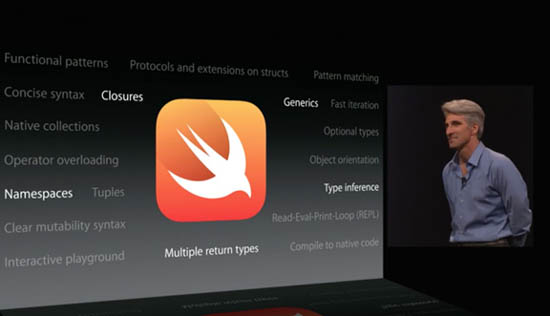 Назвав Swift инновационным языком программирования для операционных систем iOS и OS X, Тим Кук отметил, что он стал результатом последних исследований компании в области языков программирования с десятилетиями опыта создания Apple-платформ. При помощи Swift написание кода превращается в простую задачу, он устраняет все классы небезопасного кода, генерирует приложения, выполняющиеся с невероятной скоростью.
