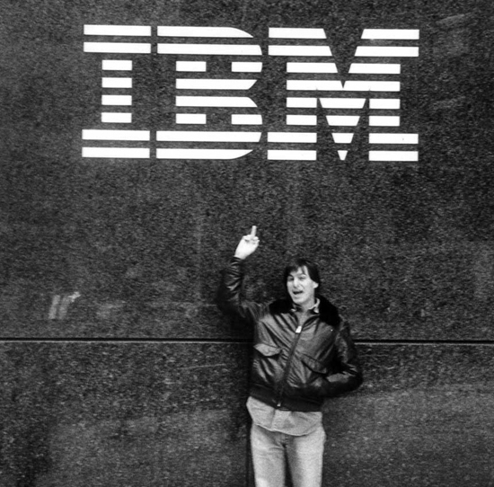 В 1983 году Стив Джобс назвал IBM близорукой и высокомерной компанией, которая вскоре должна низко упасть. Камень в огород IBM бросил и знаменитый рекламный ролик «1984», намёк был понятен всем зрителям, хотя название компании прямо не упоминалось. Также на презентации первых Macintosh в том же году прозвучала не менее обидная для компьютеров IBM фраза — «Никогда не доверяйте компьютеру, который не можете поднять».