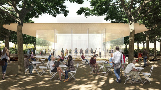Джобс уже тогда приоткрыл занавес на то, как будет выглядеть постройка: похожая на приземлившееся НЛО, в конструкции много стекла, сад на внутренней территории, смотровая площадка на крыше, и, как обязательные атрибуты - кафе и Apple Store.