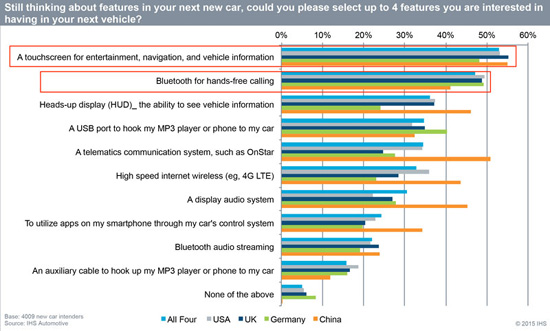 В рамках опроса IHS Automotive выяснила, что около 45% респондентов высказали намерение использовать приложения в автомобиле, если они помогут сделать процесс вождения лучше, а 35% ответили, что будут активнее пользоваться такими разработками, если они будут такими же, как на смартфонах. 75% опрошенных указали, что будут готовы платить за обновление приложений.