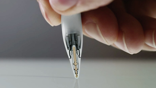 Два датчика, встроенные в кончик Apple Pencil, вычисляют точное направление и угол наклона руки. Когда пользователь пишет или рисует, их относительное положение определяется дисплеем Multi-Touch. Благодаря этому можно достичь эффекта затенения, просто наклонив Apple Pencil, — словно в руках уголь или обычный карандаш.