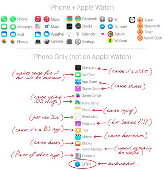 Канетти подчеркивает, что мало кто заметил и возмутился тем фактом, что на домашнем экране Apple Watch отсутствует фирменный браузер Apple.