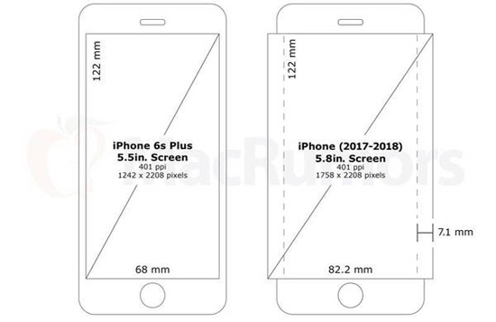 Недавние слухи о разработке iPhone Pro с экраном 5,8" получили частичное подтверждение. Само название, вызвавшее немало вопросов, на сей раз не упоминается, но диагональ заявлена та же. При этом гигантской новинка не станет, по габаритам корпуса она будет схожа с iPhone 6S Plus, а увеличение размера дисплея объясняется лишь его необычной формой.
