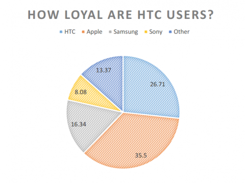 Для сравнения, бывшие владельцы HTC чаще всего переходят на Apple (35,5%), Samsung (16,34%), Sony (8,08%) и другие бренды (13,37%).