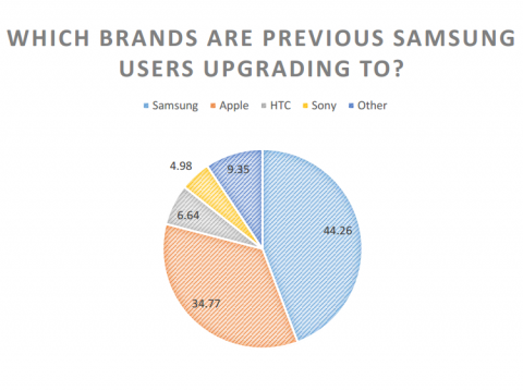 В то же время бывшие владельцы Samsung вновь приобретают смартфоны корейского вендора в 44,26% случаев. 34,77% покупателей переходят на Apple, 6,64% - на HTC, 4,98% предпочитают японские смартфоны Sony, а 9,35% предпочитают другие бренды.