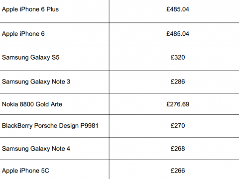 Вот так выглядит топ самых дорогих перепродаваемых смартфонов в Британии за 2014 год.