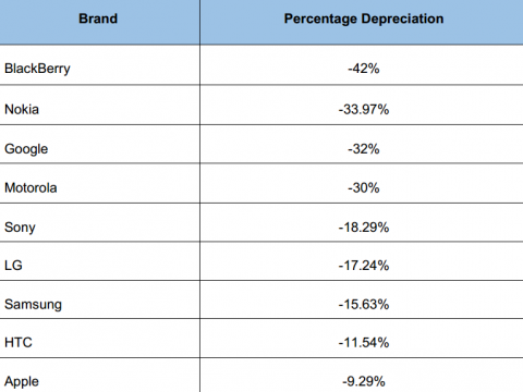 Смартфоны многих брендов довольно сильно потеряли в цене за последний год, и особенно сильно это коснулось BlackBerry, которая подешевела на вторичном рынке почти на 42%. За ней следуют смартфоны Nokia, потеряв почти 34%. Наконец, треть цены утратили смартфоны Google и Motorola.