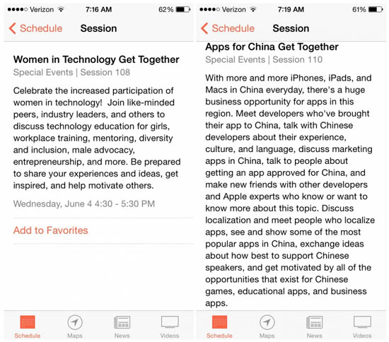 В преддверии конференции разработчиков WWDC 2014 Apple обновила соответствующее приложение WWDC. В приложении появилось описание множества секций для разработчиков, некоторые из которых вызывают особый интерес.