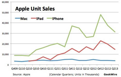 «Основным приоритетом для Apple должны стать фаблеты премиум-уровня с пяти-дюймовыми экранами, потому что это сегмент, где сосредоточен основной потенциал рынка», сказал Моустон. Компания IDC сообщает, что во втором квартале 2013 года на мобильный рынок было поставлено 237,9 млн устройств по сравнению с 156,2 млн телефонов, проданных год назад.