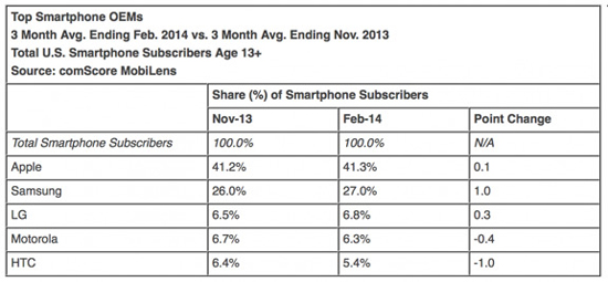 В контексте производителей смартфонов самым популярным на американском рынке оказался бренд Apple, за ним следует Samsung. Два лидера рынка занимают соответственно 41,3% и 27,0%, причем южнокорейский вендор за последние три месяца прибавил 1,0%, а производитель iPhone – 0,1%. LG также улучшила позиции на 0,3%, заняв долю 6,8%.