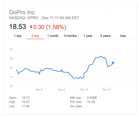 До этого акции GoPro дешевели на фоне опасений инвесторов касательно неспособности компании выдержать конкуренцию со стороны Apple и других производителей смартфонов. Котировки производителя цифровых камер GoPro могут упасть с нынешних $35 до $25, считают наблюдатели.