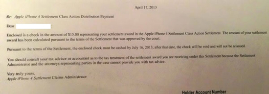 Думаю, что все помнят проблемы с антенной у iPhone 4. На Apple тогда пользователи подали коллективный иск и суд присудил яблочной компании выплату компенсаций. Это решение было принято в прошлом феврале. Сейчас настал час расплаты и пользователи с 17 апреля начали получать чеки на $15.
