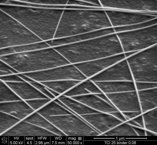 Другим важным достоинством серебряных нанопроволок считается их гибкость. Кроме того, дисплеи из такого материала показали высокую (89%) прозрачность, что позволит делать экраны с большей контрастностью. Гибкость серебряной подложки позволит создавать закругленные дисплеи или даже дисплеи, сворачиваемые в рулон.