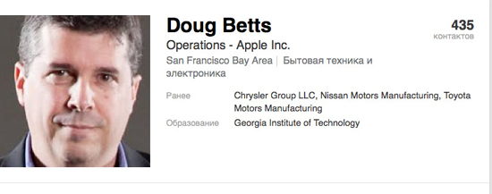 У компании из Купертино есть несколько сотен сотрудников, которые занимаются тайными разработками электромобиля Apple. Ветеран автомобильной отрасли Бетт, согласно информации на его странице в LinkedIn, стал сотрудником Apple в июле этого года. Он возглавлял исследовательскую лабораторию Fiat Chrysler с 2009-го. Бетт более 25 лет работал на аналогичных должностях в различных компаниях отрасли, включая Toyota и Nissan. В конце прошлого года он покинул итальянско-американскую компанию, чтобы продолжить свою карьеру в Apple.