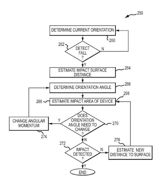 Компания Apple теперь уделяет внимание и этому аспекту использования мобильных устройств. В новом патенте компании «защита электронного устройства» описывается принцип работы механизма, способного перевернуть гаджет во время его падения для защиты наиболее уязвимых частей от удара.