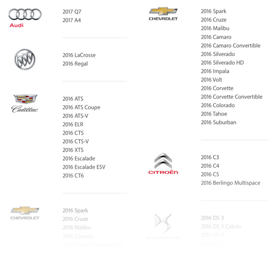 Полный список производителей представлен на отдельной странице сайта Apple. Он насчитывает свыше 100 моделей от 21 партнера компании: Audi, Buick, Cadillac, Chevrolet, Citroen, DS Automobiles, Ferrari, Ford, GMC, Honda, Hyundai, Mercedes-Benz, Mitsubishi, Opel, Porsche, Peugeot, Seat, Skoda, Suzuki, Volkswagen и Volvo. В нем не указаны компании, выпускающие автомобильные магнитолы с поддержкой CarPlay, например Pioneer и JBL.