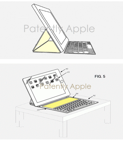 В 2012 году Apple запатентовала "умный" чехол для iPad с гибким дисплеем, солнечными панелями и встроенной клавиатурой. Теперь стали известны подробности о патенте на улучшенную версию Smart Keyboard от Apple, которая также оснащается дисплеем. Экран на клавиатуре может работать как настраиваемый набор виртуальных клавиш, панель настроек для открытого на планшете приложения, меню быстрого запуска приложений, а также как сенсорная панель для перемещения открытых программ с дополнительного дисплея на основной при помощи мультитач-жестов.
