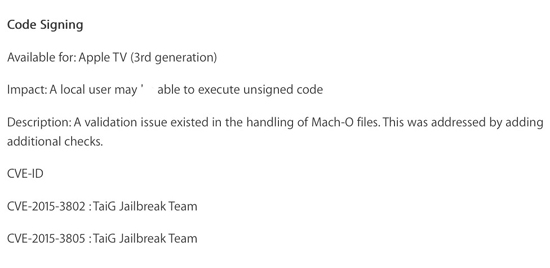 Apple поблагодарила разработчиков джейлбрейка TaiG за обнаружение уязвимостей в Apple TV