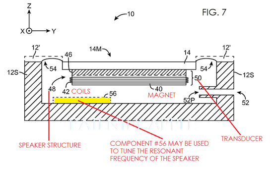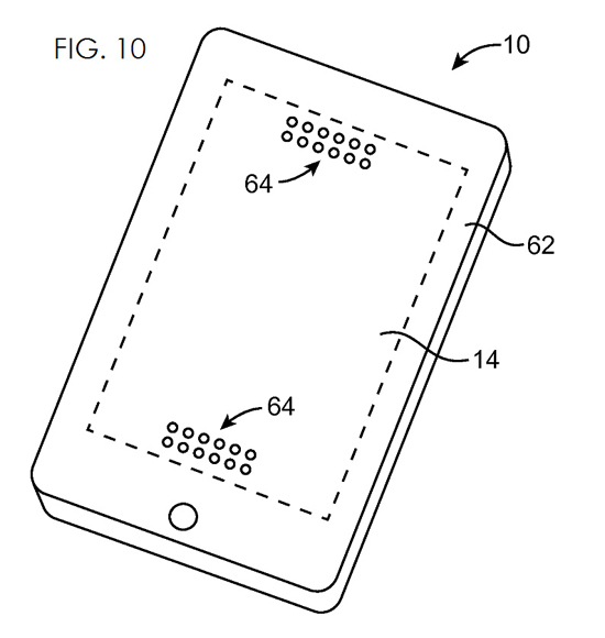 Бюро патентов и торговых знаков США выдало Apple патент на технологию производства гибких OLED-дисплеев, совмещающих в себе функции динамика. Устройство дисплея-громкоговорителя показано на иллюстрациях в документах. Преимуществом такого подхода является большая площадь звукового излучателя.
