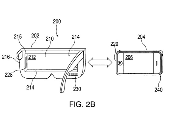 Бюро патентов и торговых знаков США выдало Apple патент на «Носимый на голове прибор для удержания портативного электронного устройства с дисплеем». Судя по описанию, компания ориентируется на гаджеты с небольшим экраном.