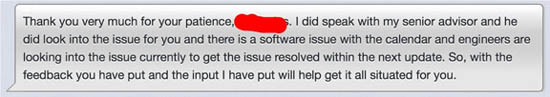 Литовец обратился за разъяснениями к Apple. Ответ последовал почти незамедлительно: сотрудники техподдержки сообщили, что компания знает о наличии программного сбоя в iOS 7.1.2 и исправит его в следующем обновлении. Будет ли это iOS 7.1.3 или iOS 8, в Apple не уточнили.