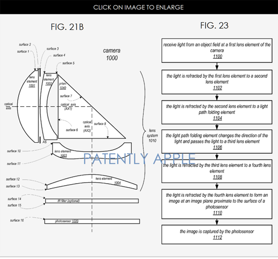 Телеобъективы отличаются обычно заметными размерами, что идёт вразрез с идеей мобильного устройства. Но в полученном компанией патенте описывается необычная изогнутая система, состоящая из относительно небольшого количества линз. При таком подходе большая часть объектива прячется в корпусе и не выступает наружу.