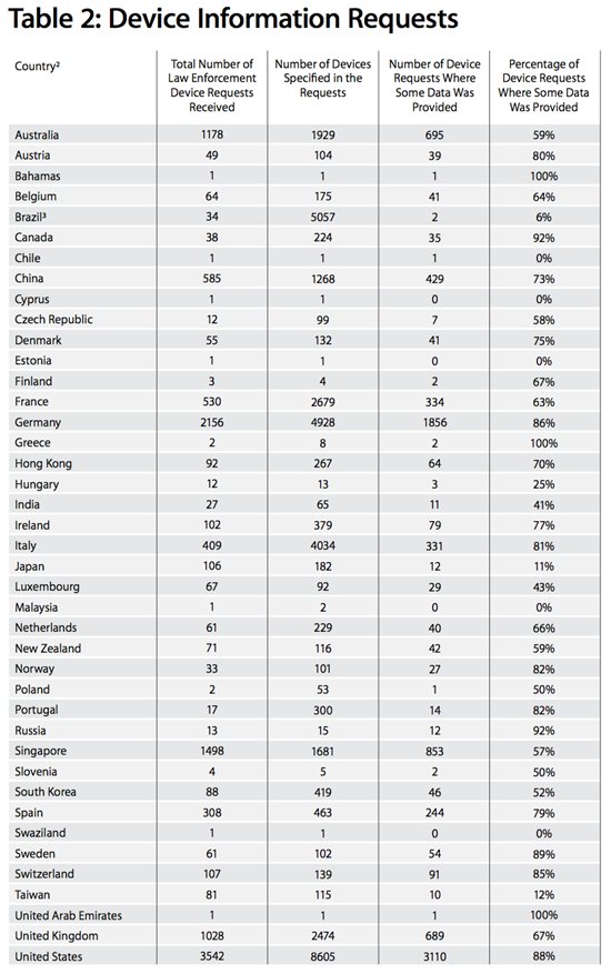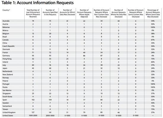 На фоне скандала о сборе конфиденциальных данных со стороны спецслужб США Apple приходится прикладывать немало усилий, чтобы улучшить свою репутацию. Сегодня компания опубликовала документ в котором рассказала о процессах предоставления данных о пользователях, а также указала количество раскрытой персональной информации по запросу правительства некоторых стран.