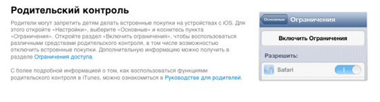 Особенно порадовало, что теперь Apple сама указала, как именно можно отключить внутриигровые покупки в приложениях. Неслучайно инженеры назвали этот способ «Родительский контроль», хотя ни малейшего намека на подобное название в iOS пока нет.