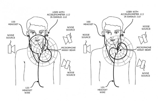 Встроенный в наушники Apple акселерометр будет определять речь человека на основе колебаний его голосовых связок. В комбинации с акустическими сигналами с микрофонов технология позволяет выделить речь человека и устранить посторонние шумы. Патент на новую технологию был получен 3 апреля, а зарегистрирован 15 марта 2013 года.