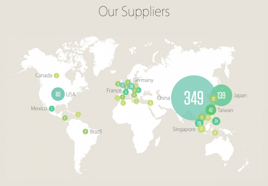 Так, в качестве одного из основных заводов по сборке компьютеров был добавлен Flextronics International. Тем не менее, Foxconn Technology Group остается крупнейшим производителем продуктов Apple, располагающим 7 фабриками по сборке в Китае и Бразилии.