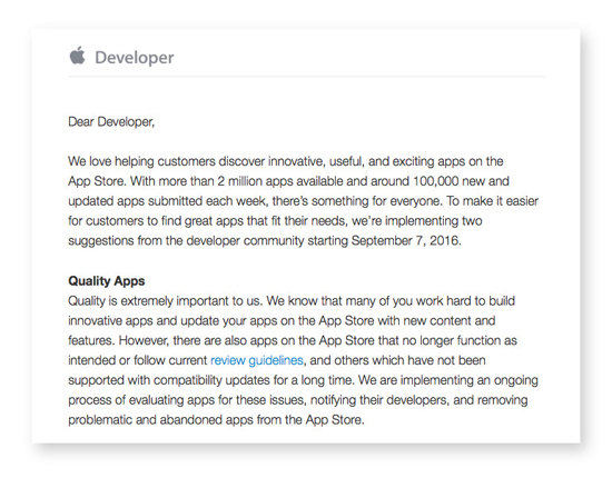 Начиная с сентября администрация App Store будет проверять приложения по всем категориям магазина, чтобы убедиться, что «они работают, как положено, следуют текущим рекомендациям и не устарели».