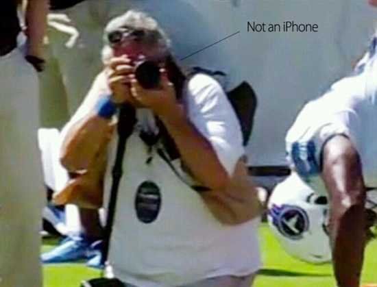 На кадре телетрансляции видно, что фотограф снимает момент прыжка футболиста не на iPhone 7 Plus, а на профессиональную «зеркалку».