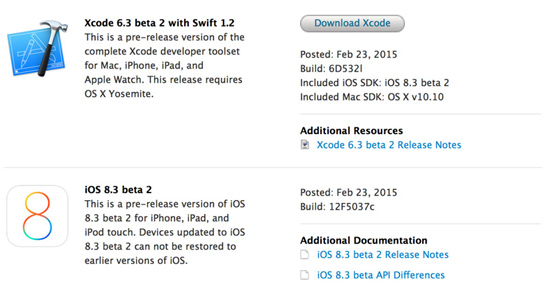 Apple выпустила вторую тестовую версию обновления iOS 8.3 для iPhone и iPad. Релиз доступен разработчикам на официальном сайте в разделе Dev Center, а также на устройствах с установленной iOS 8.3 beta 1 через встроенную систему обновлений.