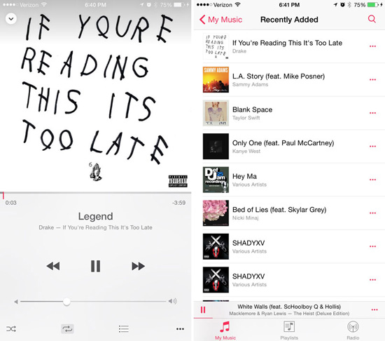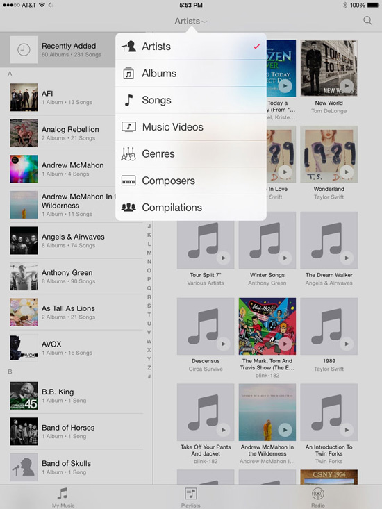 У Музыки на iPad появился новый режим с разделением экрана на две части. При этом версия для iPhone начисто лишилась горизонтального режима с просмотром обложек альбомов.