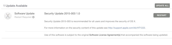 Хотя апдейт 2015-003 1.0 не является таким же критически важным, как предыдущий, он рекомендуется для загрузки всем пользователям Mac. Его можно установить через систему автоматического обновления в Mac App Store.
