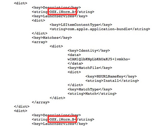 В воскресенье Apple обновила встроенный механизм защиты в OS X, который теперь успешно идентифицирует и блокирует OSX.iWorm.A и OSX.iWorm.B. Обновление устанавливается на ОС автоматически и запрещает исполнение зараженных файлов при помощи технологии Apple Xprotect. Данная функция, названная в честь файла Xprotect.plist, хранящего сигнатуры вредоносного ПО, впервые была выпущена в августе 2009 года, одновременно с дебютом Mac OS X 10.6. Используя Xprotect, компания может автоматически блокировать опасные типы файлов.