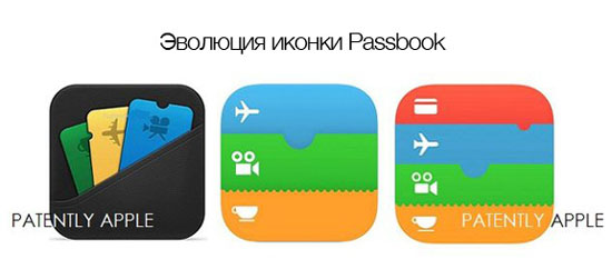 «3 октября 2014 года Бюро патентов и торговых знаков США опубликовало патентную заявку Apple на обновленную иконку Passbook. В ней добавлен новый компонент Apple Pay четвертой полосой красного цвета. Действительная дата регистрации заявки – 29 сентября. Apple отмечает, что новый Passbook хранит посадочные талоны, билеты, подарочные карты и другие данные и при необходимости автоматически выводит их на экран блокировки. С запуском Apple Pay приложение позволит управлять покупками».