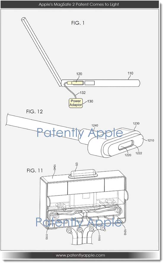 На днях Apple получила патент на разъем MagSafe 2, показанный впервые летом 2012 года одновременно с MacBook Pro c Retina-дисплеем. В патенте под номером 20130005159 указано, что сам разъем может обладать корпусом из титана, меди, фосфористой бронзы или любого другого подходящего металла. Разработчиком патента является инженерный дизайнер Чжэн Гао и дизайнер устройств Apple Джош Понг.