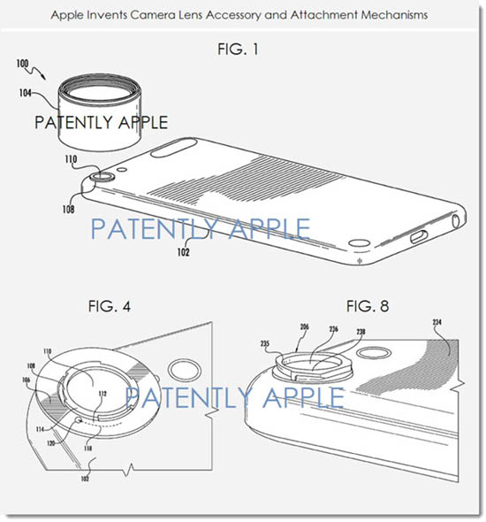 В патенте также описывается некоторое количество своеобразных переходников, которые помогут прикрепить к iPhone, практически, любой объектив вплоть до профессионального.