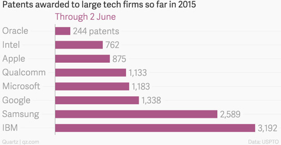 С начала текущего года IBM уже получила 3192 патента, Samsung — 2589, Apple – 875. Другими участниками списка, показатели которых могут вызвать интерес, являются Google (1338 патентов), Microsoft (1183), Qualcomm (1133), Intel (762). Замыкает топ самых плодотворных генераторов изобретений Oracle, которая получила с начала года 244 патента.