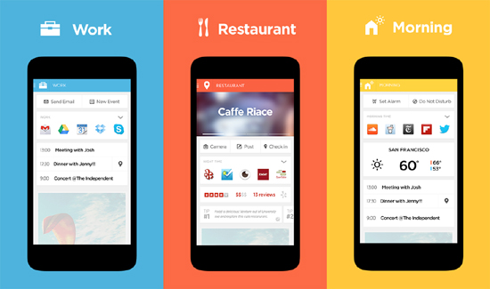 На Android-смартфонах вышел Aviate — альтернативный лончер, который подстраивает набор приложений на домашнем экране в зависимости от вида деятельности человека. К примеру, в кафе программа откроет рекомендательные сервисы и Google Maps, предложит "отметиться" в Foursuare и сделать фотографию места, а на работе — обеспечит быстрый доступ к календарю, Dropbox, Skype, почте и офисным утилитам.