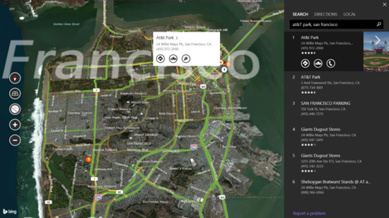 Также в Bing Maps Preview появился режим просмотра улиц, наподобие Street View в картах Google. По сравнению с Bing Maps, в Preview немного изменился интерфейс: появились новые иконки, жесты управления для сенсорного экрана и так далее. В настоящий момент оба приложения доступны для скачивания в Windows Store.