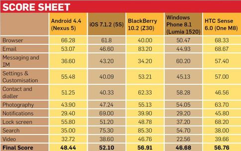 BlackBerry смогла намного обойти конкурентов по удобству использования почтового приложения и поиска. А вот практически по всем прочим параметрам заметно отстает. Однако даже в таком случае судьи присудили ей первое место по комфортности и функциональности.