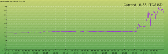 Тем временем цена виртуальной криптовалюты Litecoin за последние два дня выросла более чем на 100% – до $8,7: