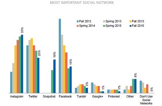 На втором месте идет Twitter, который играет главную роль для 20% подростков. Затем идет Snapchat с 19%, и лишь после него – Facebook. Всего 15% респондентов сказали, что это их самый любимый социальный сайт, причем эта цифра снижается все последние годы.