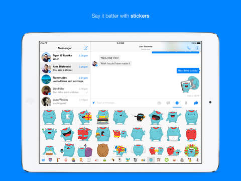 Messenger 7.0 доступен в нативном режиме на планшетах Apple. Интерфейс программы напоминает фирменный мессенджер Apple, его характеризует прозрачная панель статуса, светлая строка меню, обновленные иконки и шрифты. Чтобы добавить новый контакт в приложение, достаточно ввести номер телефона. Помимо совместимости с iPad в новой версии также исправлены ошибки: список активных пользователей отображается быстрее.
